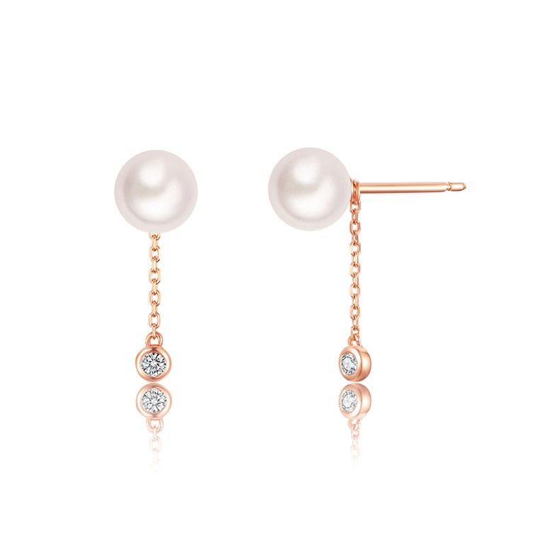 This pair of earrings is a perfect combination of luxury and elegance. The round pearls exude a warm and charming luster, like the moonlight on a calm lake, peaceful and beautiful. Under the pearls, the dazzling diamonds shine with dazzling light, like the brightest stars in the night sky, adding a touch of brilliance and magnificence to the entire earrings. The combination of diamonds and pearls complements each other. The brilliance of diamonds highlights the elegance of pearls, while the softness of pearls neutralizes the brilliance of diamonds.