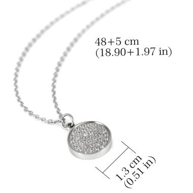 This necklace is made of carefully selected zircons covering the entire circular design, showing unparalleled sparkle and luster. Each zircon is carefully cut and polished for optimal reflection and unique brilliance. The chain part of the necklace is made of high-quality metal, which is extremely wear-resistant and corrosion-resistant, ensuring the necklace's long-lasting durability.