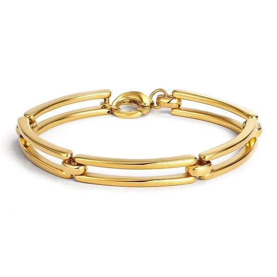 The design of the bracelet is based on rectangular blocks, and the overall design presents geometric lines. The hollow design makes the bracelet look lighter and adds a modern feel.
